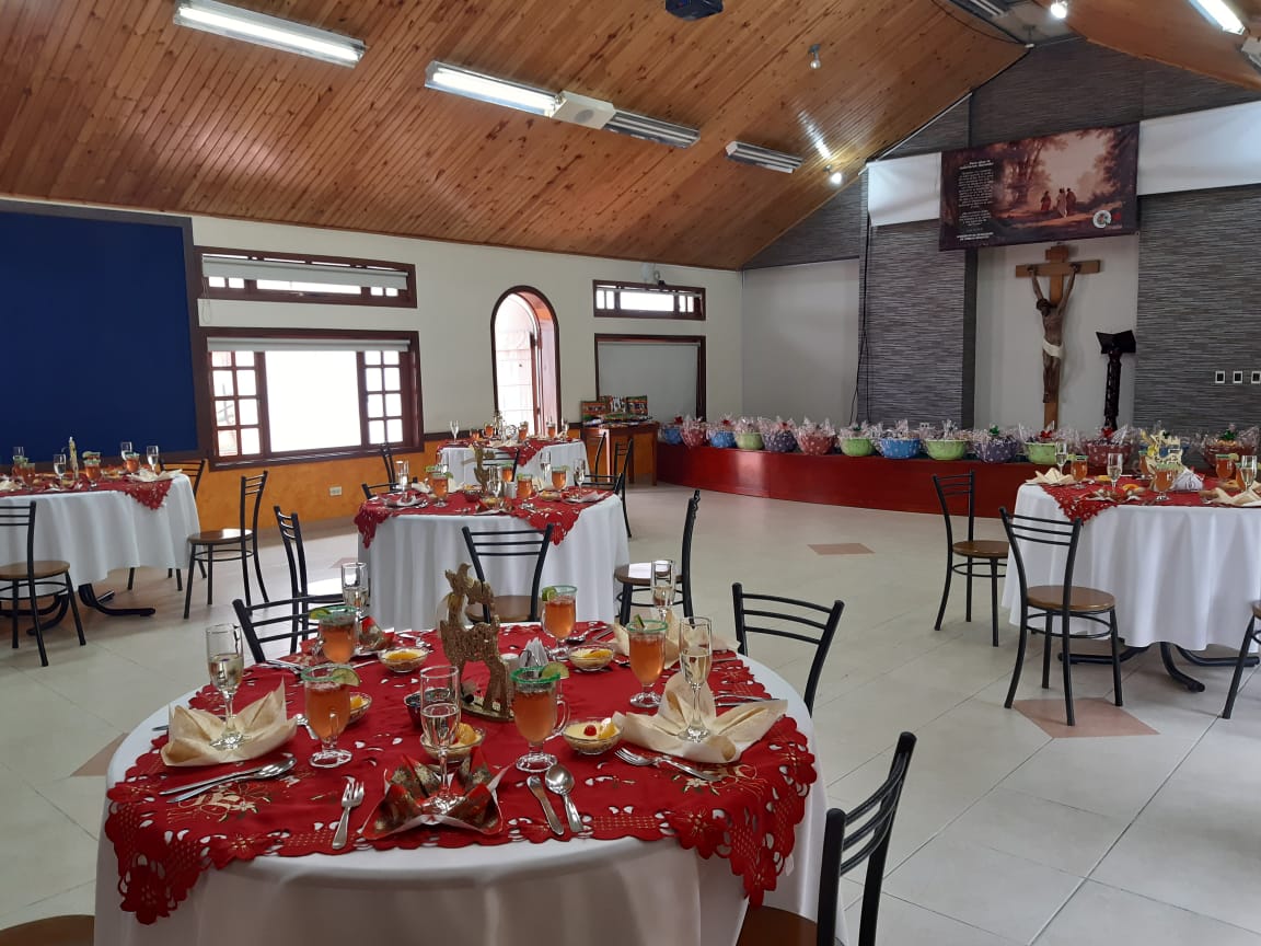 Este oratorio puede ser acondicionado con o sin sillas, tambien se puede colocar mesas estilo comedor para una celebración, conferencias y capacitaciones.